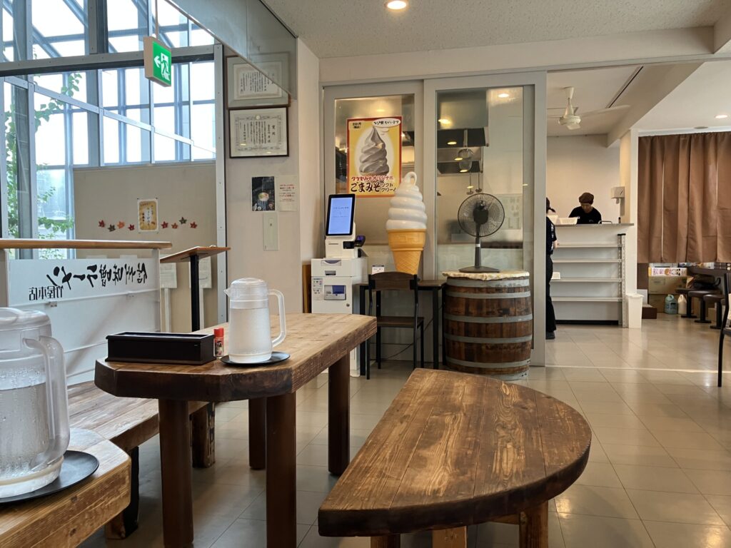 選べるメニューはラーメン・豚汁・ごまみそソフトクリームのみのシンプルisベスト スタイル。寄ったときのお腹の好き具合でサイズを選べるのは地味に嬉しいポイント。「お昼ご飯食べちゃったよ!」という方も、ハーフサイズならいけるかも?